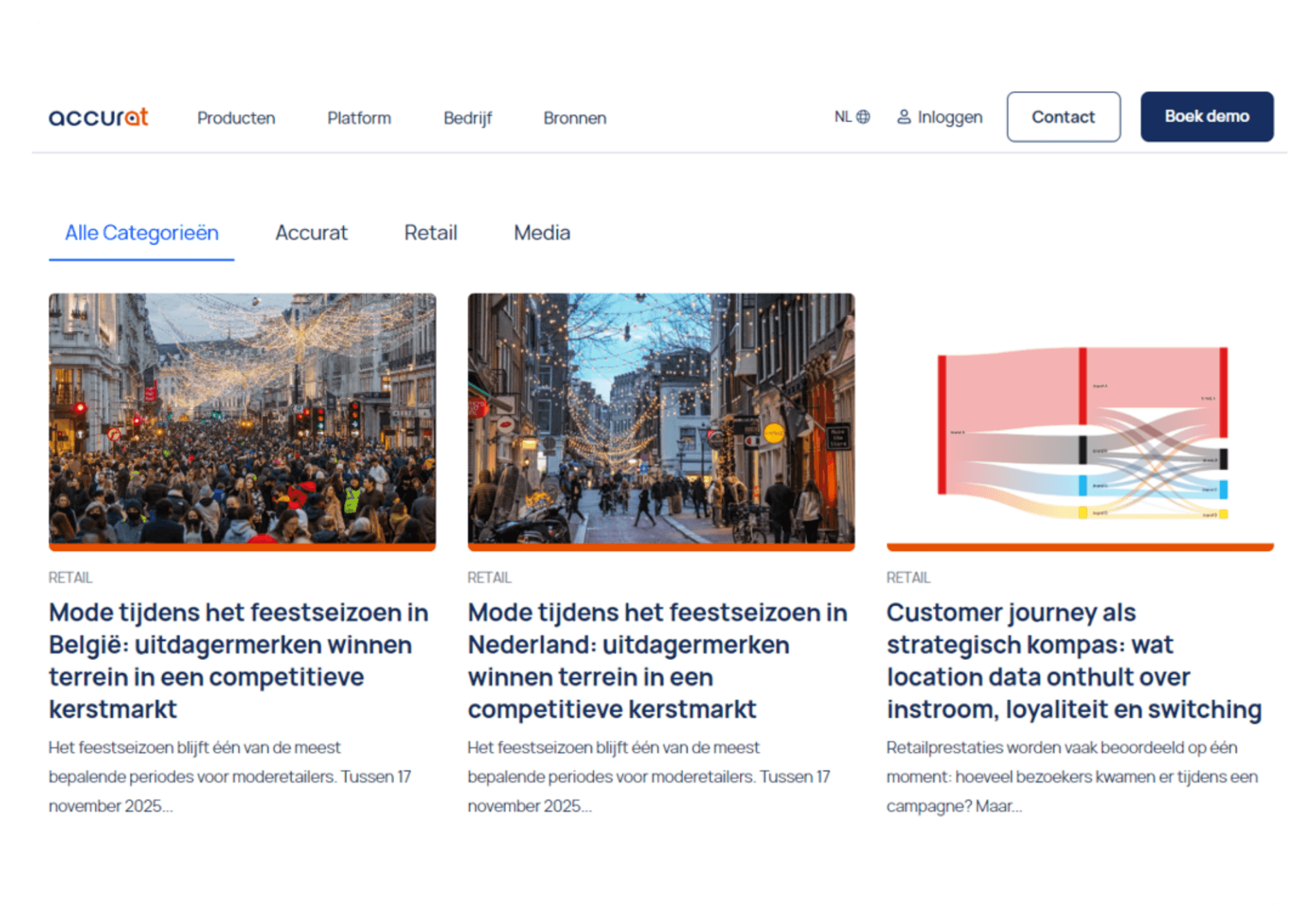 Accurat helpt organisaties om beter te begrijpen waar hun klanten zich bevinden en hoe zij zich in de echte wereld gedragen. De uitdaging bestond erin om deze meerwaarde helder te vertalen naar een website die meteen duidelijk maakt wat bezoekers concreet winnen: betere inzichten, sterkere beslissingen en meer impact uit marketing, media en locatiekeuzes. Tegelijk moest duidelijk worden waarom het een groot voordeel is dat Accurat zijn platform en data volledig zelf beheert.