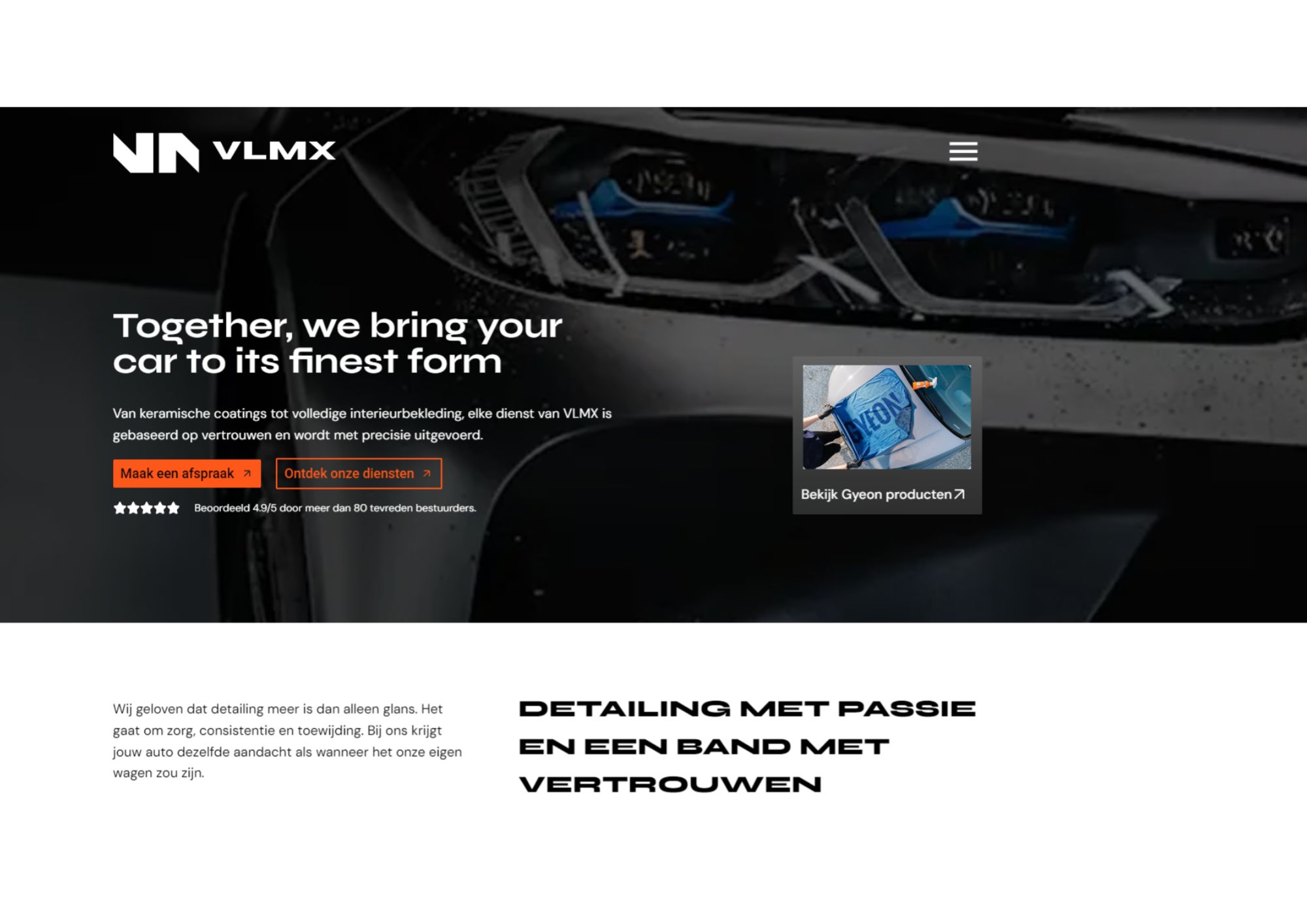 Kortom, de website versterkt VLMX als de specialist in auto detailing, waarbij vertrouwen, expertise en oog voor detail centraal staan.